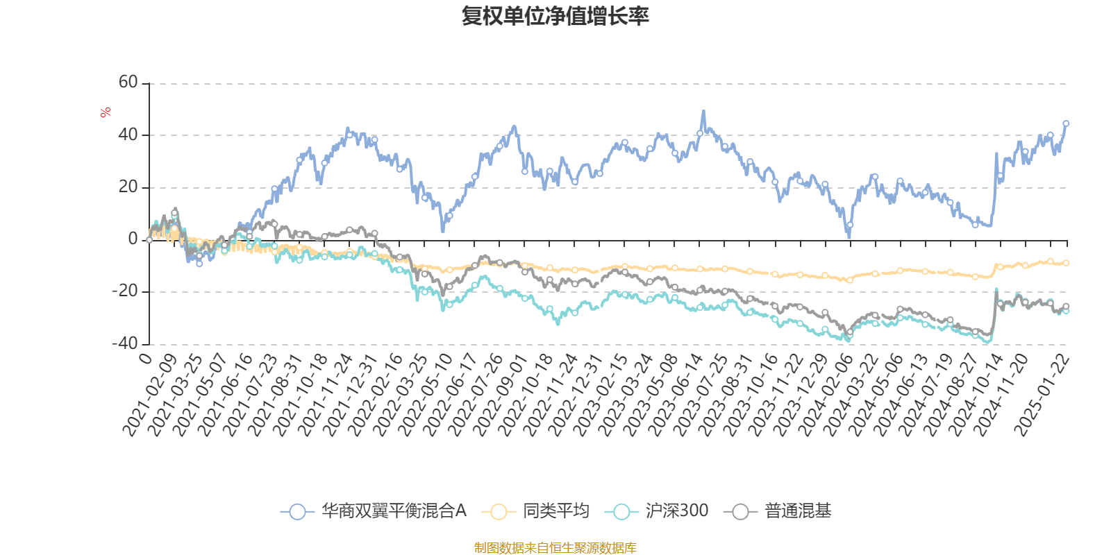 截至1月22日,华商双翼平衡混合A近三个月复权单位净值增长率为10.04%,位于同类可比基金2/670;近半年复权单位净值增长率为26.79%,位于同类可比基金1/670;近一年复权单位净值增长率为33.19%,位于同类可比基金1/664;近三年复权单位净值增长率为10.82%,位于同类可比基金34/525。
