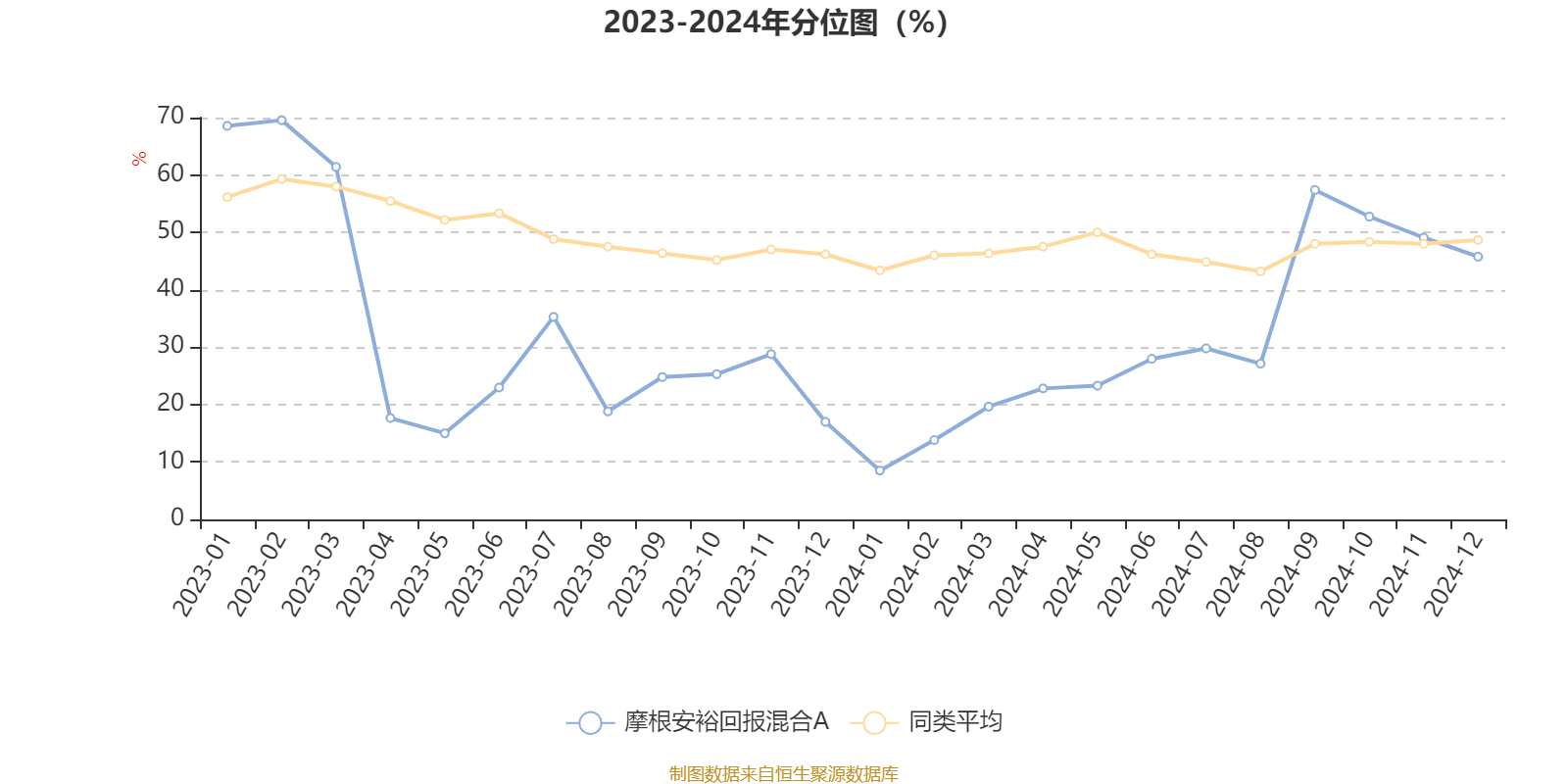 通过所选区间该基金净值增长率分位图,可以观察该基金与同类基金业绩比较情况。图为坐标原点到区间内某时点的净值增长率在同类基金中的分位数。