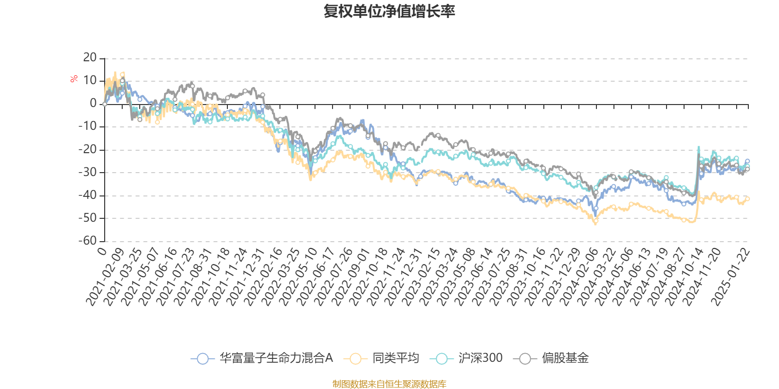截至1月22日,华富量子生命力混合A近三个月复权单位净值增长率为3.27%,位于同类可比基金93/536;近半年复权单位净值增长率为21.72%,位于同类可比基金64/536;近一年复权单位净值增长率为35.14%,位于同类可比基金41/500;近三年复权单位净值增长率为-12.89%,位于同类可比基金47/265。