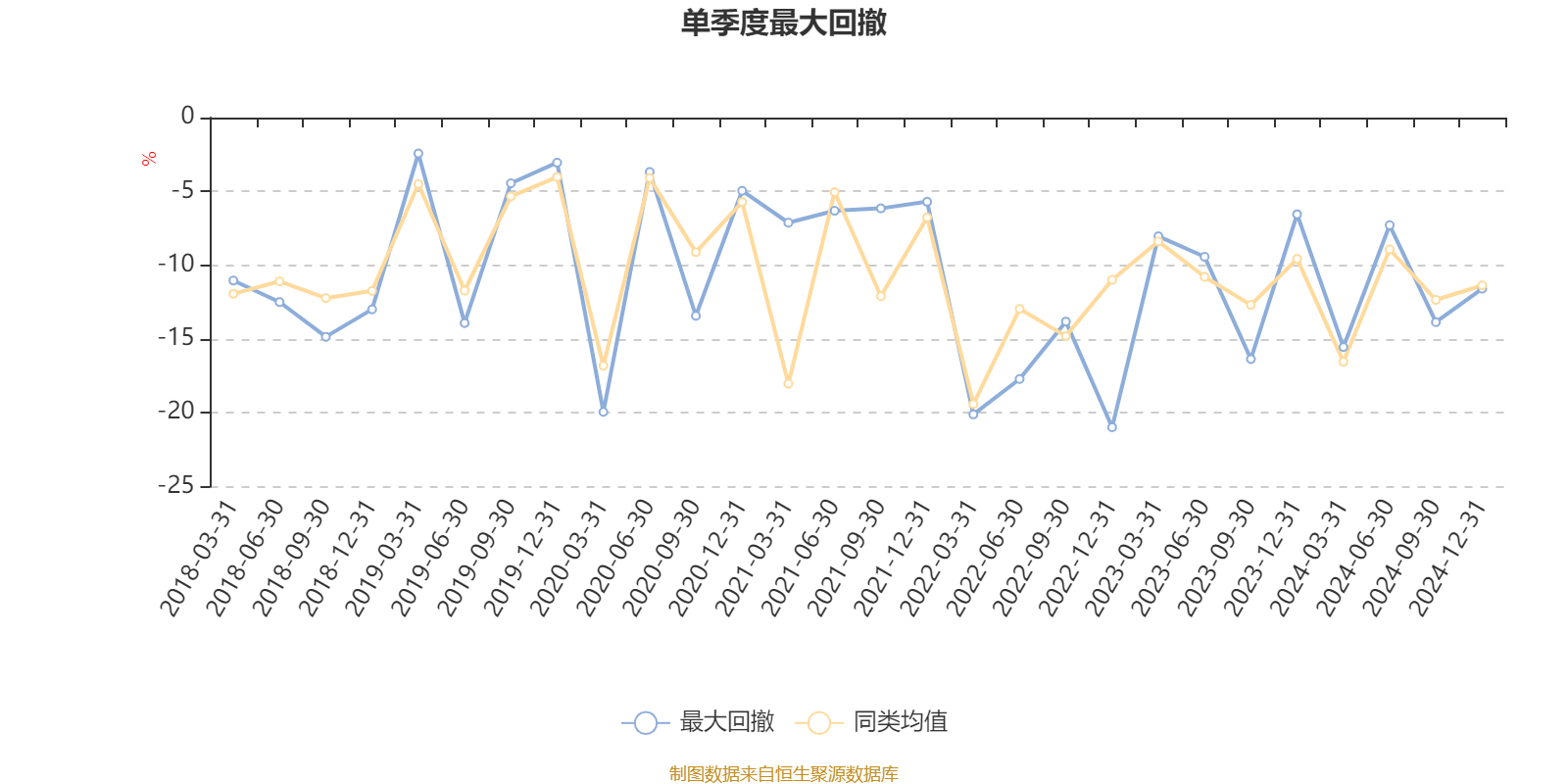 通过所选区间该基金净值增长率分位图,可以观察该基金与同类基金业绩比较情况。图为坐标原点到区间内某时点的净值增长率在同类基金中的分位数。