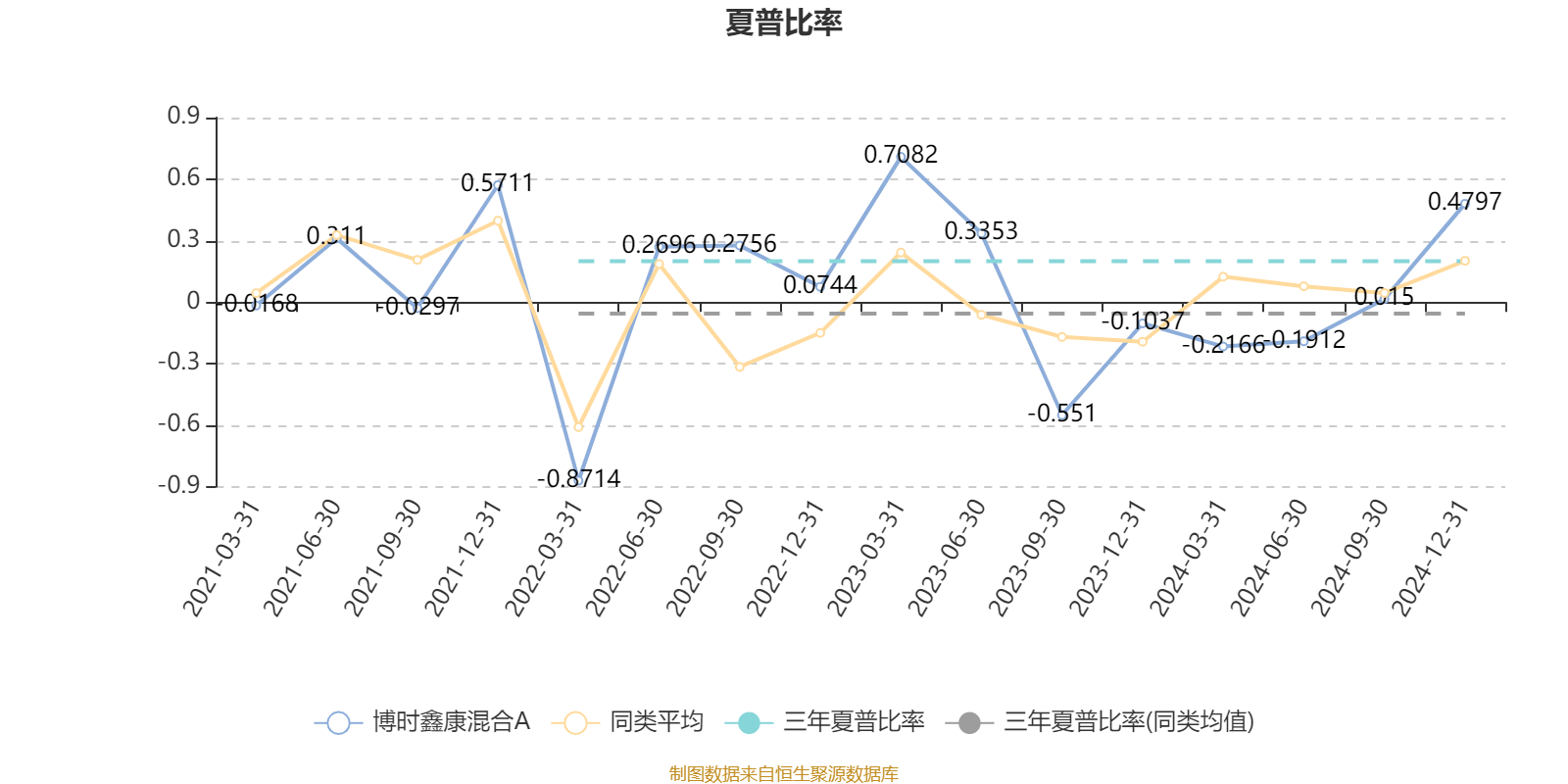 截至12月31日,基金近三年夏普比率为0.1995,位于同类可比基金55/153。