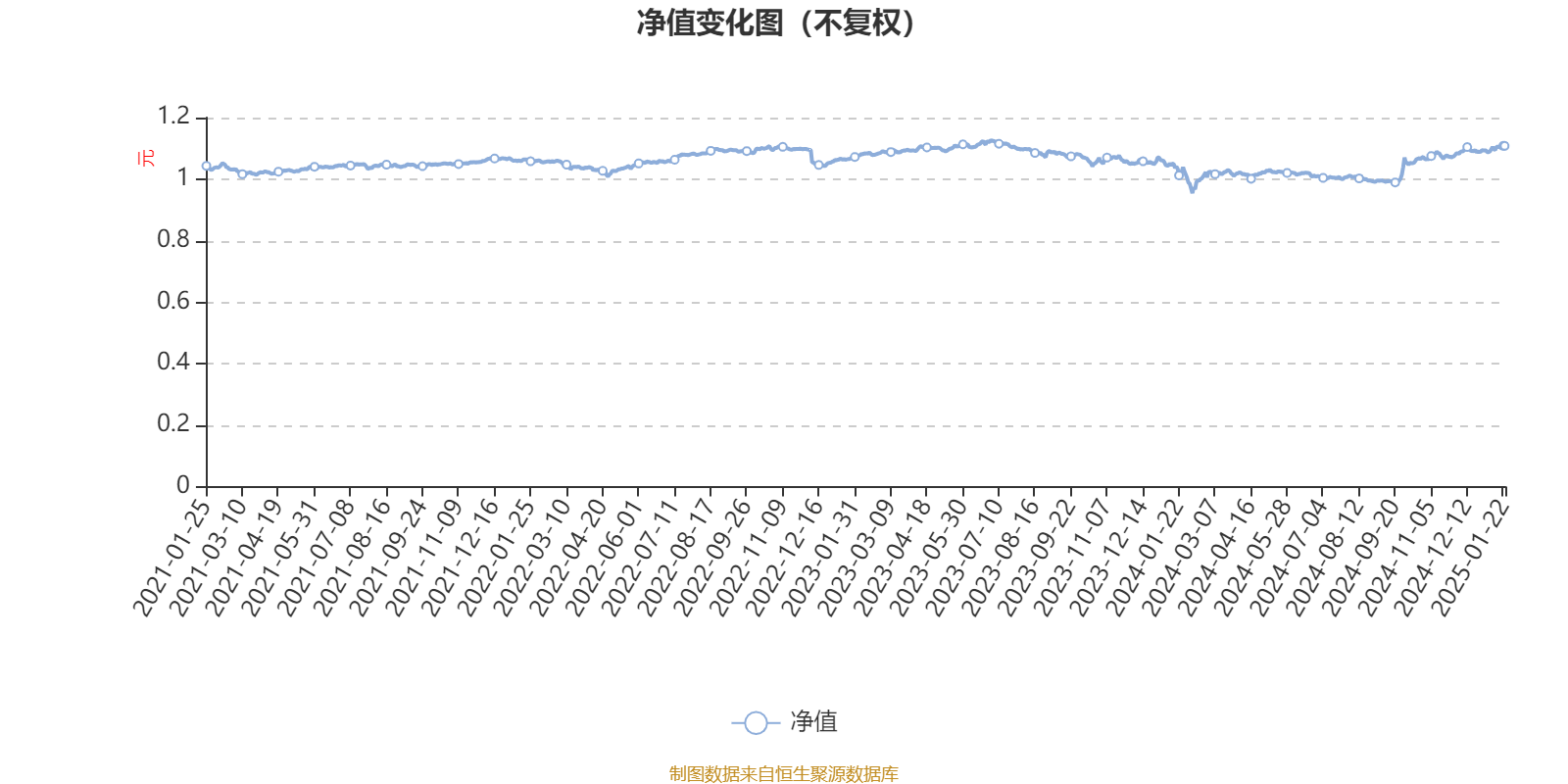 基金管理人在四季报中表示,展望 2025 年一季度,基本面仍是强支撑,宽松政策的预期仍在,预计收益率可能会震荡下行,但随着收益率的大幅下行,票息保护降低,债市将进入高波动重交易阶段,超长利率债将是重点,因此组合在保持久期的同时更加注重利率波段交易机会。
