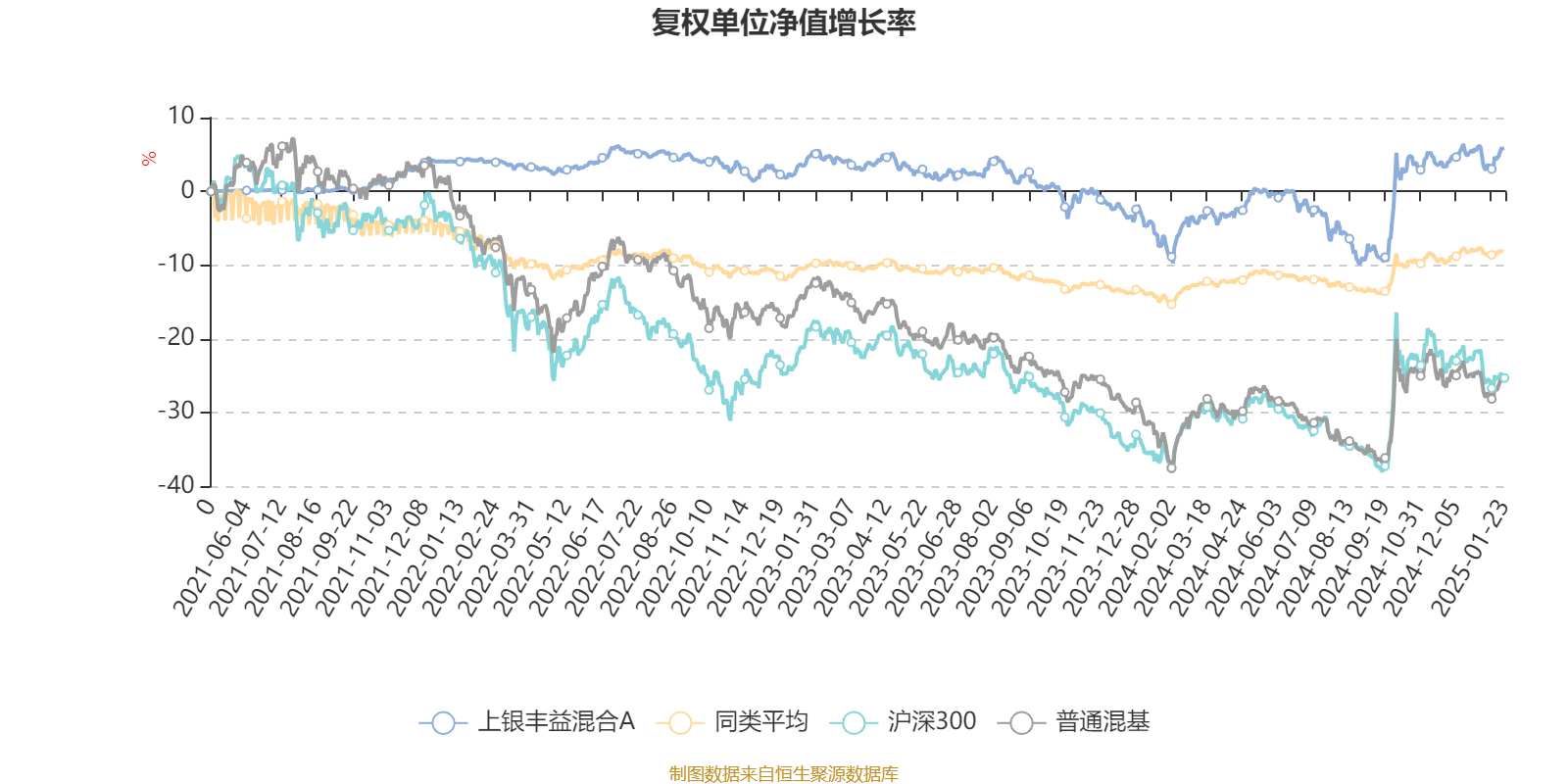 截至1月22日,上银丰益混合A近三个月复权单位净值增长率为0.73%,位于同类可比基金387/670;近半年复权单位净值增长率为9.65%,位于同类可比基金32/670;近一年复权单位净值增长率为14.13%,位于同类可比基金39/664;近三年复权单位净值增长率为1.17%,位于同类可比基金302/525。
