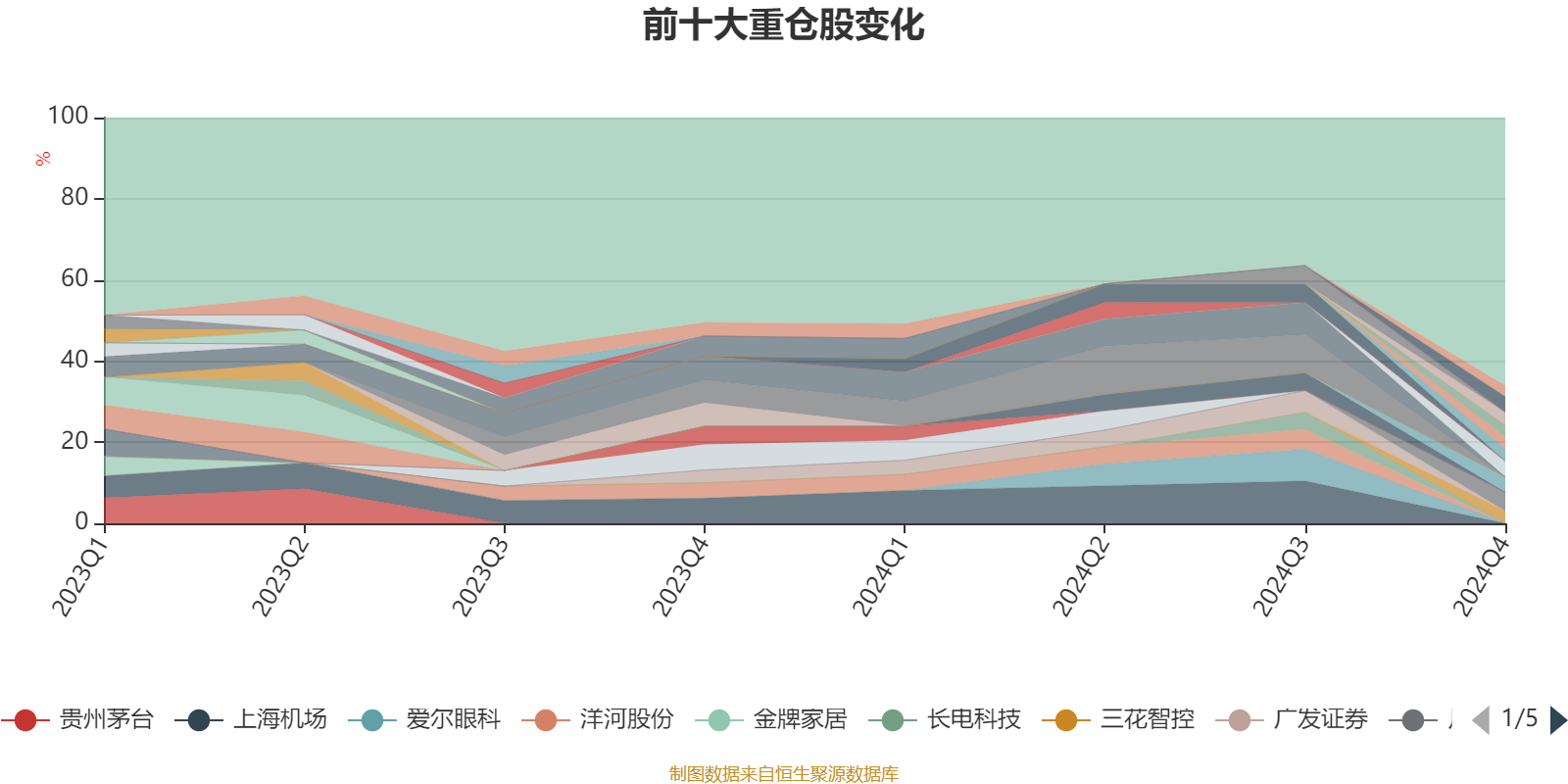 截至2024年四季度末,基金十大重仓股分别是片仔癀、迈瑞医疗、羚锐制药、阳光电源、沃尔核材、三花智控、北方华创、国药股份、牧原股份、振华科技。