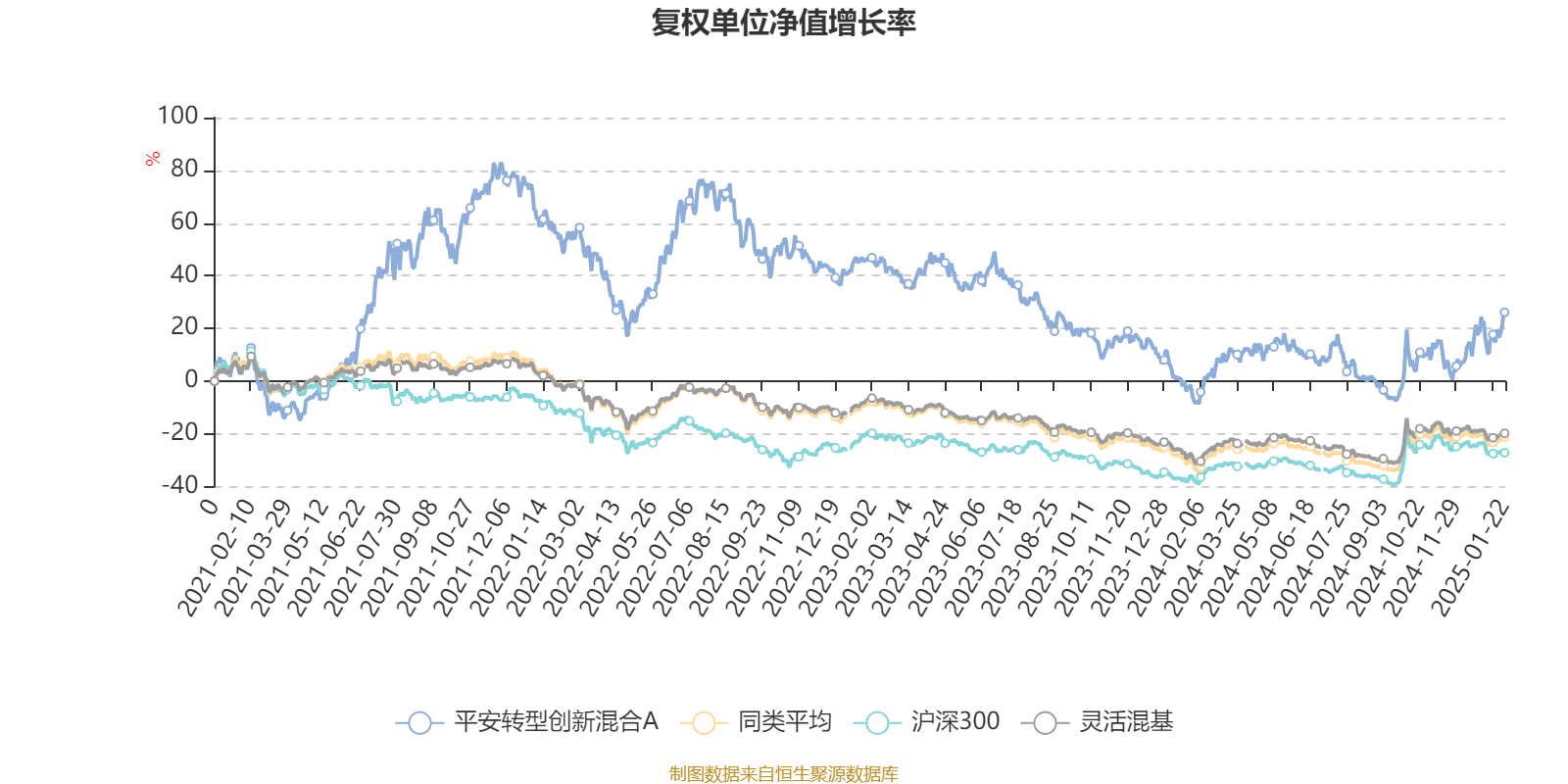 截至1月22日,平安转型创新混合A近三个月复权单位净值增长率为13.68%,位于同类可比基金17/920;近半年复权单位净值增长率为13.87%,位于同类可比基金235/920;近一年复权单位净值增长率为31.27%,位于同类可比基金91/920;近三年复权单位净值增长率为-19.95%,位于同类可比基金384/898。