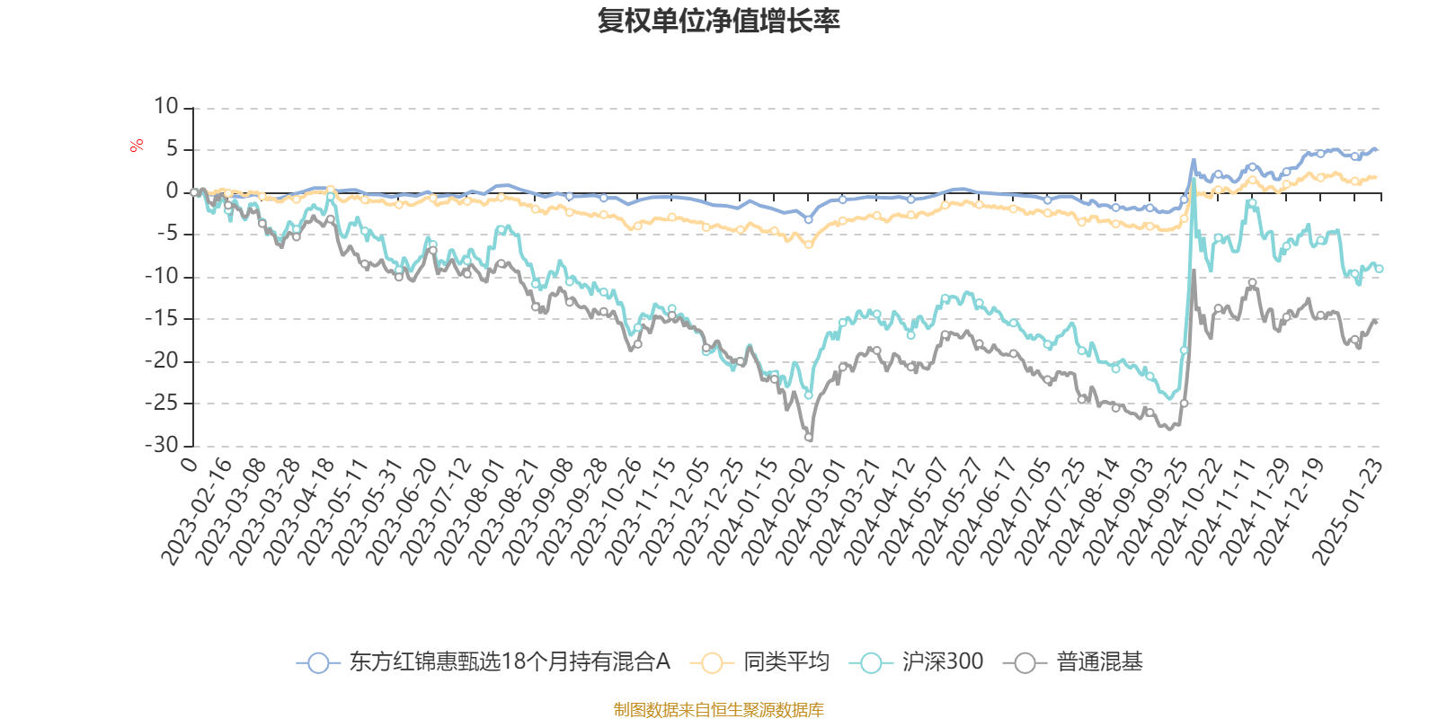 截至1月22日,东方红锦惠甄选18个月持有混合A近三个月复权单位净值增长率为2.71%,位于同类可比基金65/670;近半年复权单位净值增长率为5.45%,位于同类可比基金146/670;近一年复权单位净值增长率为7.53%,位于同类可比基金303/664。