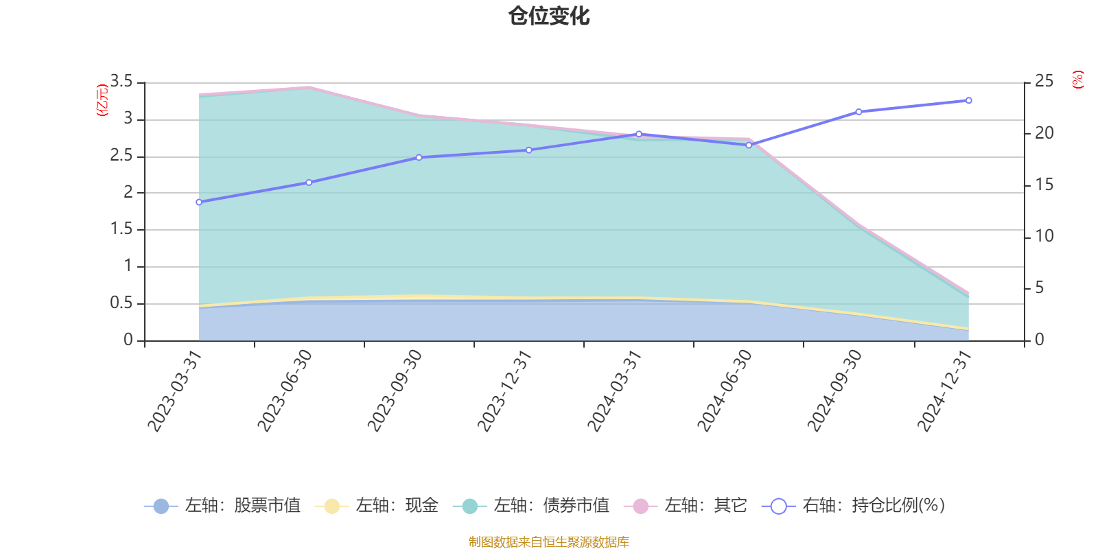 据定期报告数据统计,成立以来平均股票仓位为18.65%,同类平均为18.74%。2024年末基金达到23.25%的最高仓位,2023年一季度末最低,为13.41%。