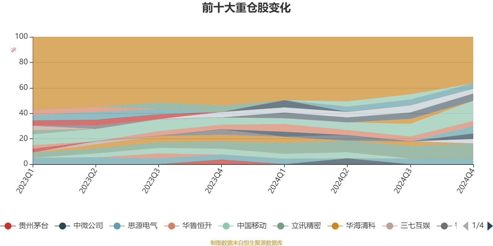 截至2024年四季度末,基金十大重仓股分别是腾讯控股、立讯精密、伊利股份、恒瑞医药、思源电气、海尔智家、宁德时代、中信证券、金山办公、青岛啤酒股份。
