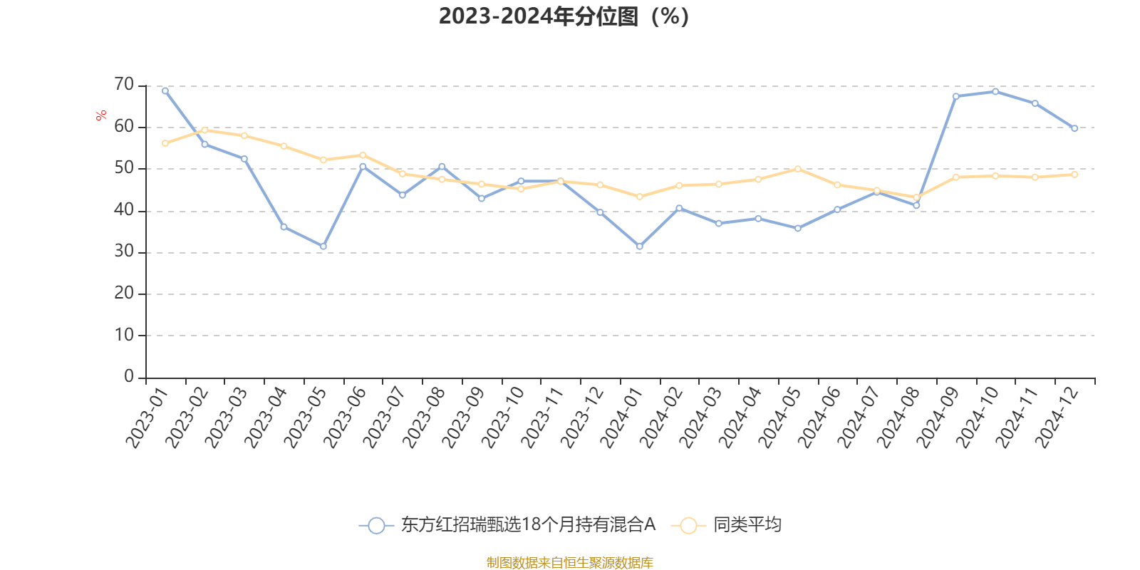 通过所选区间该基金净值增长率分位图,可以观察该基金与同类基金业绩比较情况。图为坐标原点到区间内某时点的净值增长率在同类基金中的分位数。