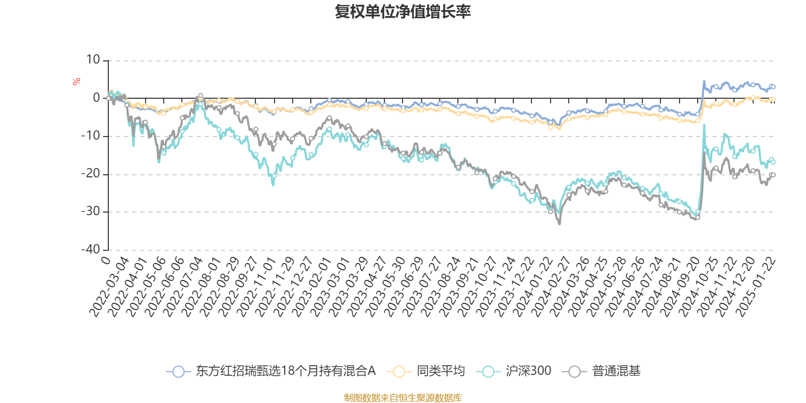 截至1月22日,东方红招瑞甄选18个月持有混合A近三个月复权单位净值增长率为-0.27%,位于同类可比基金572/670;近半年复权单位净值增长率为4.98%,位于同类可比基金185/670;近一年复权单位净值增长率为10.04%,位于同类可比基金142/664。