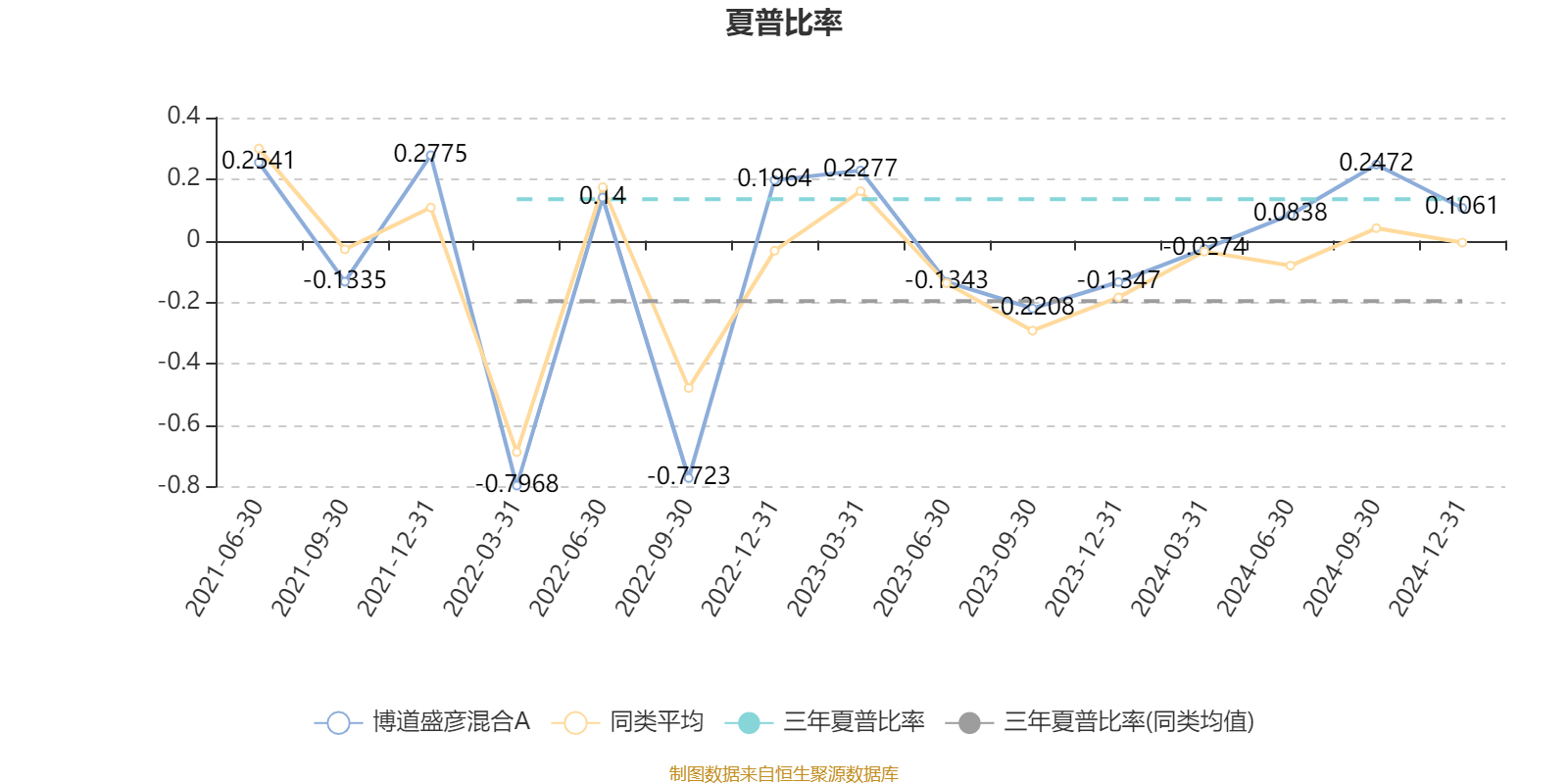 截至12月31日,基金近三年夏普比率为0.135,位于同类可比基金58/437。