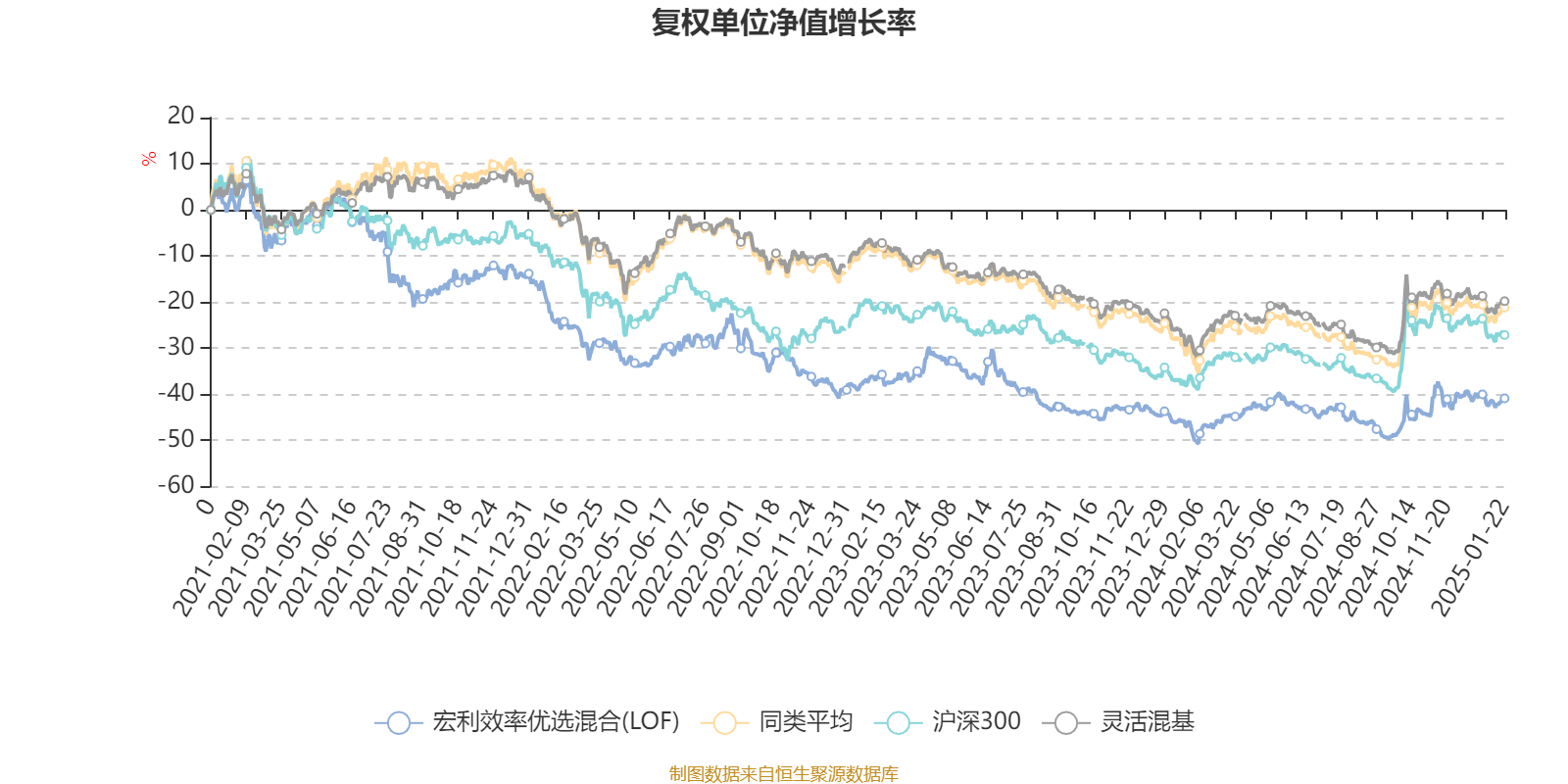 截至1月22日,宏利效率优选混合(LOF)近三个月复权单位净值增长率为4.77%,位于同类可比基金112/920;近半年复权单位净值增长率为4.38%,位于同类可比基金621/920;近一年复权单位净值增长率为11.54%,位于同类可比基金560/920;近三年复权单位净值增长率为-26.10%,位于同类可比基金535/898。