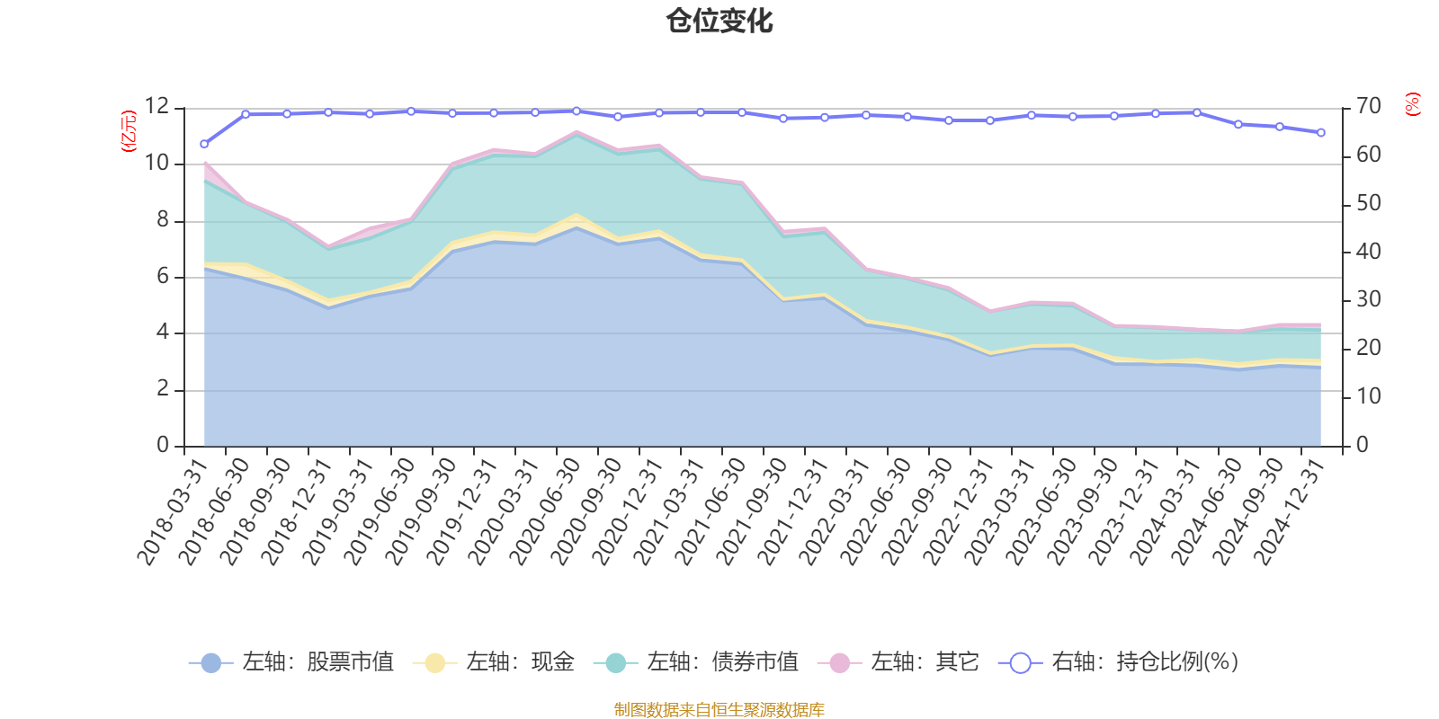 据定期报告数据统计,近三年平均股票仓位为67.65%,同类平均为79.9%。2020年上半年末基金达到69.35%的最高仓位,2018年一季度末最低,为62.53%。