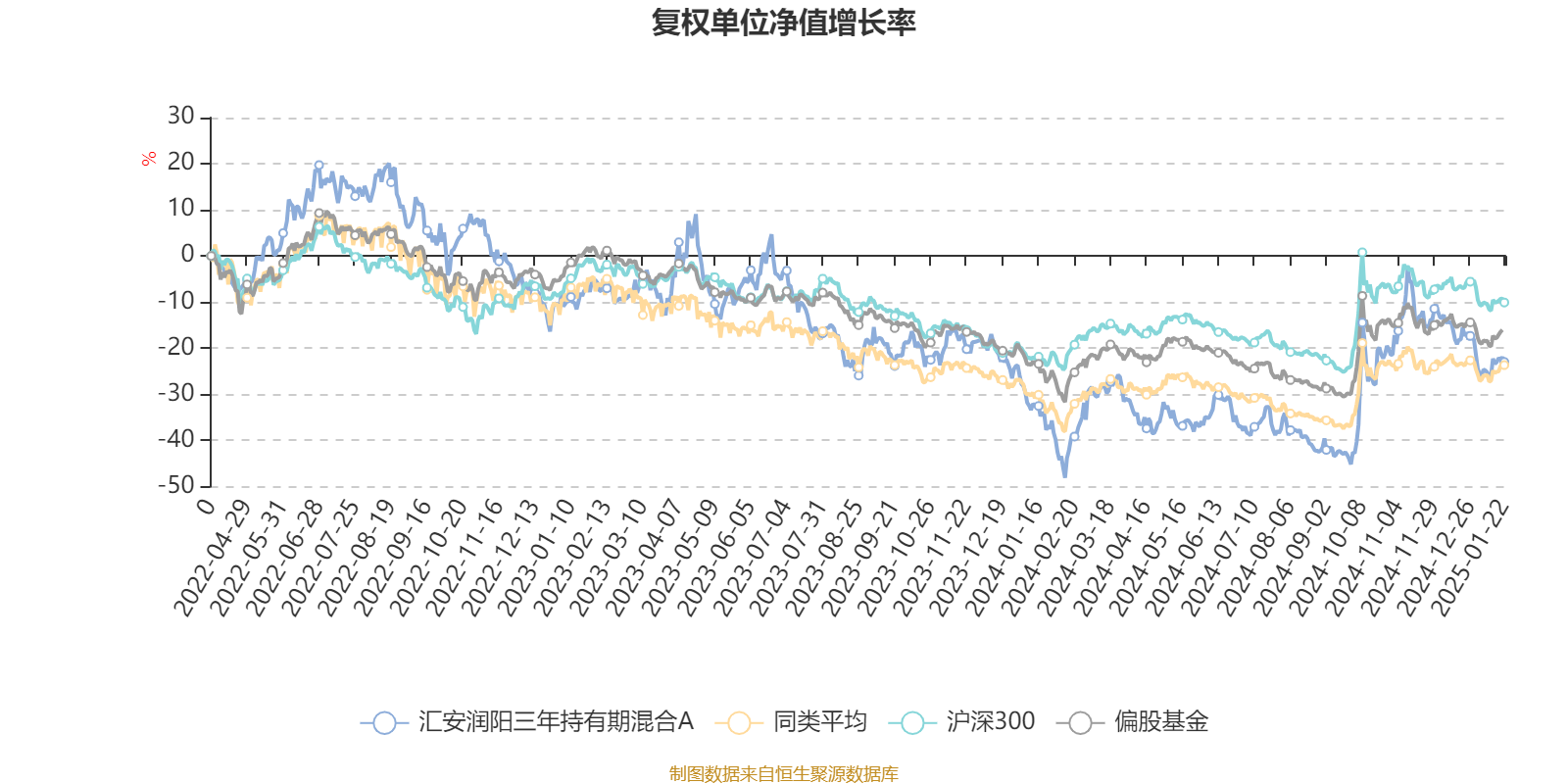 截至1月22日,汇安润阳三年持有期混合A近三个月复权单位净值增长率为-2.06%,位于同类可比基金363/646;近半年复权单位净值增长率为14.80%,位于同类可比基金194/645;近一年复权单位净值增长率为23.74%,位于同类可比基金160/633。
