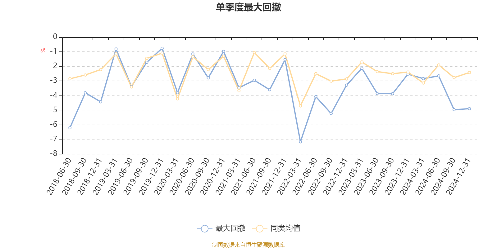截至1月22日,基金近三年最大回撤为12.76%,同类可比基金排名102/502。单季度最大回撤出现在2022年一季度,为7.17%。