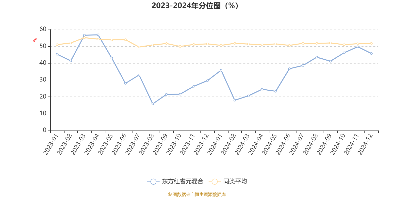 通过所选区间该基金净值增长率分位图,可以观察该基金与同类基金业绩比较情况。图为坐标原点到区间内某时点的净值增长率在同类基金中的分位数。