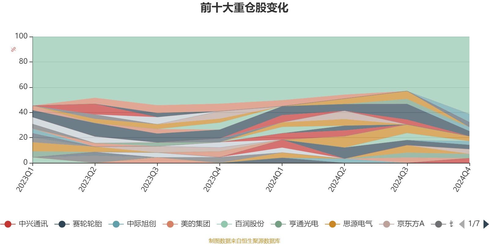 截至2024年四季度末,基金十大重仓股分别是隆基绿能、恒瑞医药、分众传媒、京东方A、中兴通讯、TCL科技、立讯精密、亨通光电、中天科技、华勤技术。