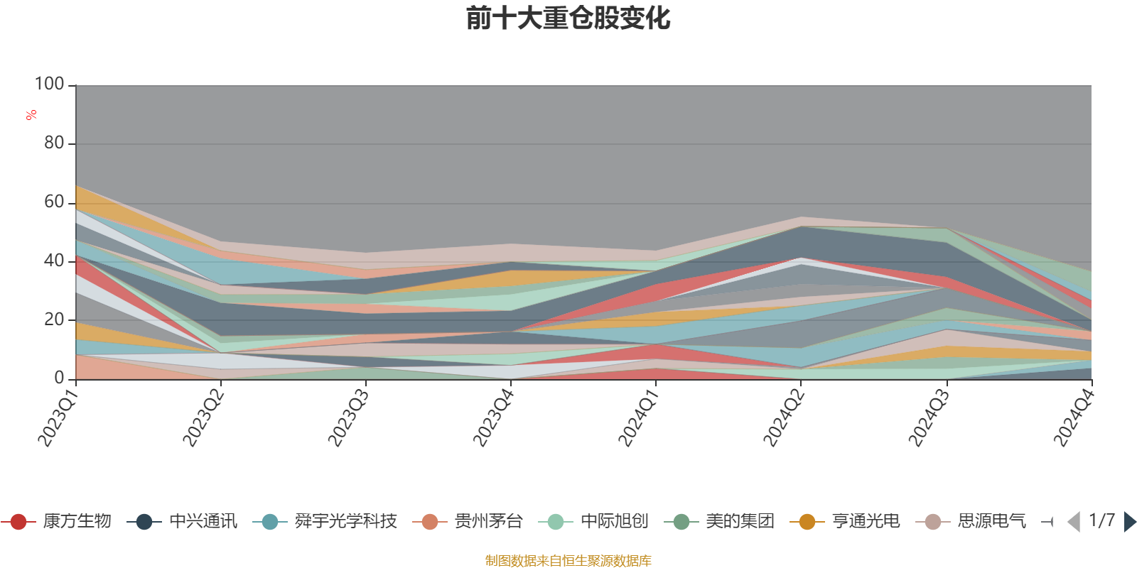 截至2024年四季度末,基金十大重仓股分别是隆基绿能、恒瑞医药、京东方A、中兴通讯、TCL科技、宁德时代、华勤技术、亨通光电、比亚迪电子、舜宇光学科技。