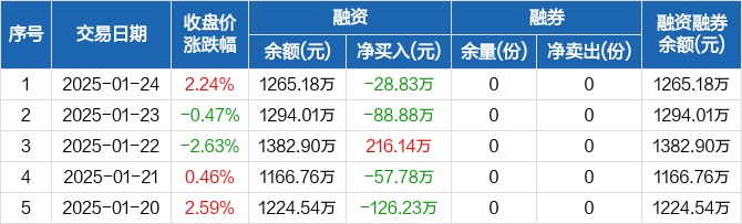 恒生互联网ETF:融资净偿还28.83万元,融资余额1265.18万元(01-24)
