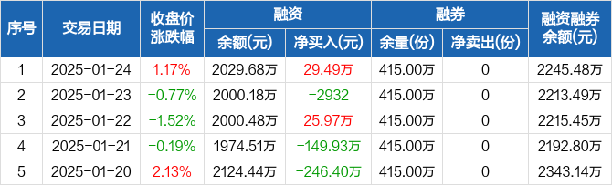锂电池ETF:融资净买入29.49万元,融资余额2029.68万元(01-24)
