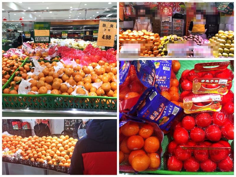 柑橘类水果是许多家庭春节必选。在幸福荣耀(磁器口店),有消费者说,过年不买橘子,仿佛没有过年。在永辉超市(搜秀城店)、吉鲜超市(吉嘉港店)等超市,新京报记者看到,柑橘类水果的散装专区摆放着橙子、橘子和柚子等,吸引多位顾客选购。有水果批发商户向新京报记者介绍,年前砂糖橘、脐橙、耙耙柑是批发销量位居前列的水果,部分柑橘类水果散货日销量可达千余斤以上。崇文门菜市场一位摊主也透露,砂糖橘日销量比往常多一倍,达到百十来斤。