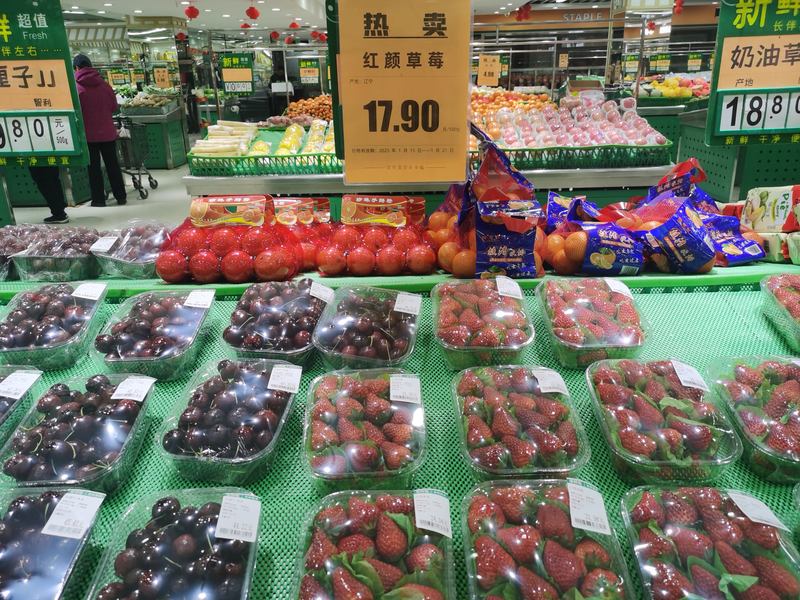 车厘子、草莓更是春节档水果中的“顶流”。新京报记者探访发现,在幸福荣耀(磁器口店)、吉鲜超市(西红门店),小盒包装草莓和车厘子集中摆放,两家超市的工作人员称,春节期间需要实时补货以满足顾客需求。