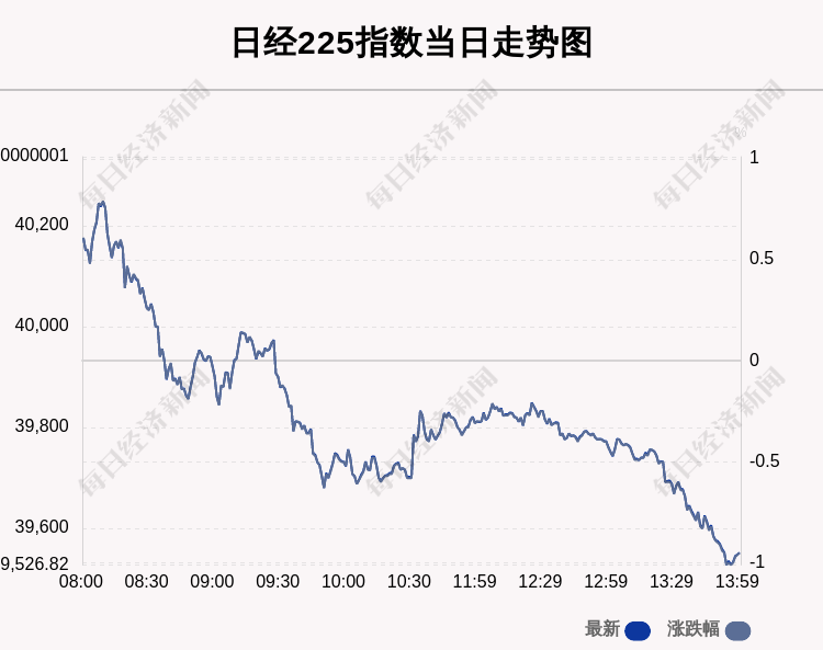 北京时间1月27日14:00,日经225指数收盘下跌380.84点,跌幅为0.95%,报39551.14点。