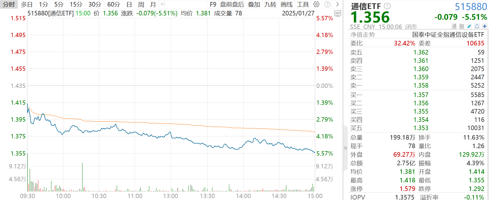 全球AI产业趋势明确,利好国内外算力产业链高景气。2025年或是国内外算力板块公司业绩共振的一年,有望迎来业绩估值共振的戴维斯双击机会。随着国产算力卡放量以及国内算力建设的加速,构建中国自主可控的AI通信体系,将成为中国算力自主可控的重要环节。感兴趣的投资者可以继续关注通信ETF(515880),把握国产算力投资机会。