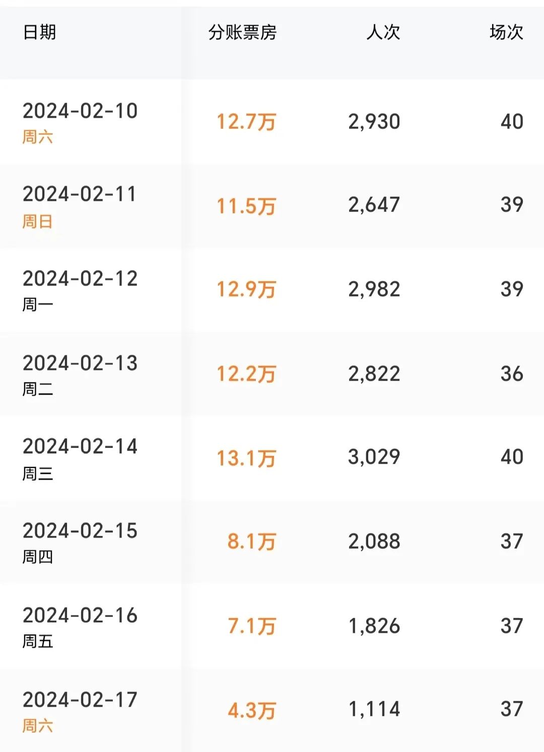但记者所在的小县城影市却呈现截然不同的状态。以前文提到的华夏影城为例,2021年至2023年,这家电影院的年度票房分别为218万元、151万元、262万元,除了2022年外,均大幅超过了2019年的170万元票房。