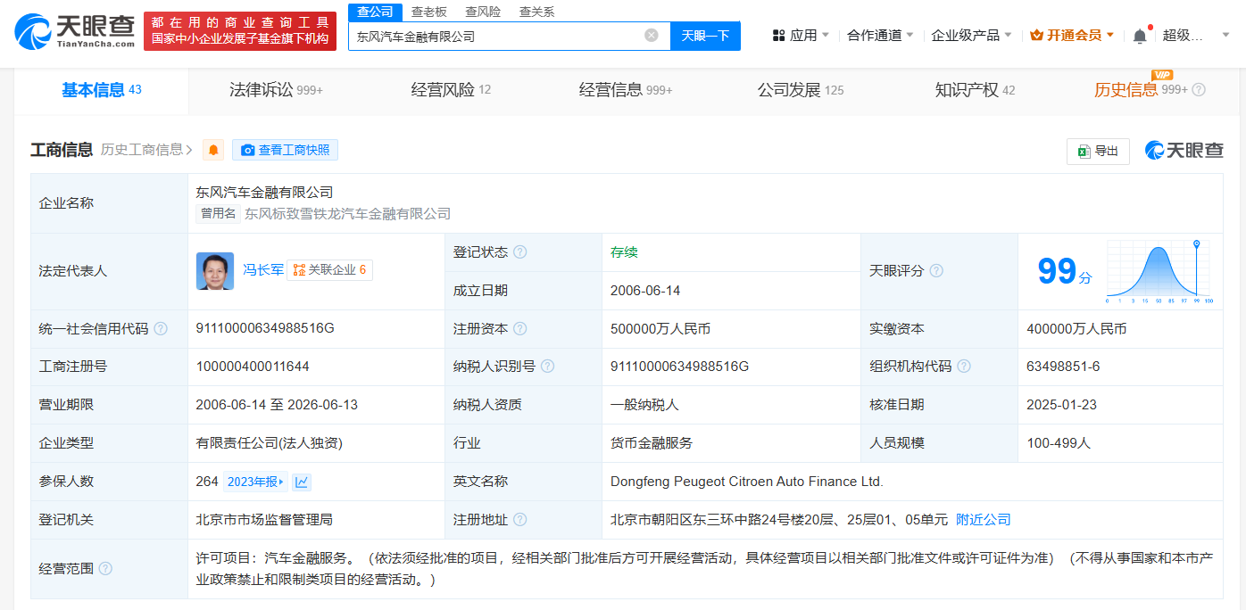 南方财经2月5日电,天眼查App显示,近日,东风汽车金融有限公司发生工商变更,注册资本由40亿人民币增至50亿人民币。该公司成立于2006年6月,法定代表人为冯长军,经营范围包括汽车金融服务,由东风汽车集团股份有限公司全资持股。