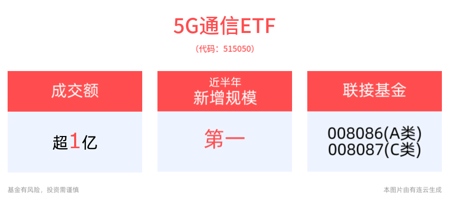 AI应用爆发持续推升算力需求,5G通信ETF(515050)成交额超1亿元,近半年新增规模居可比基金首位