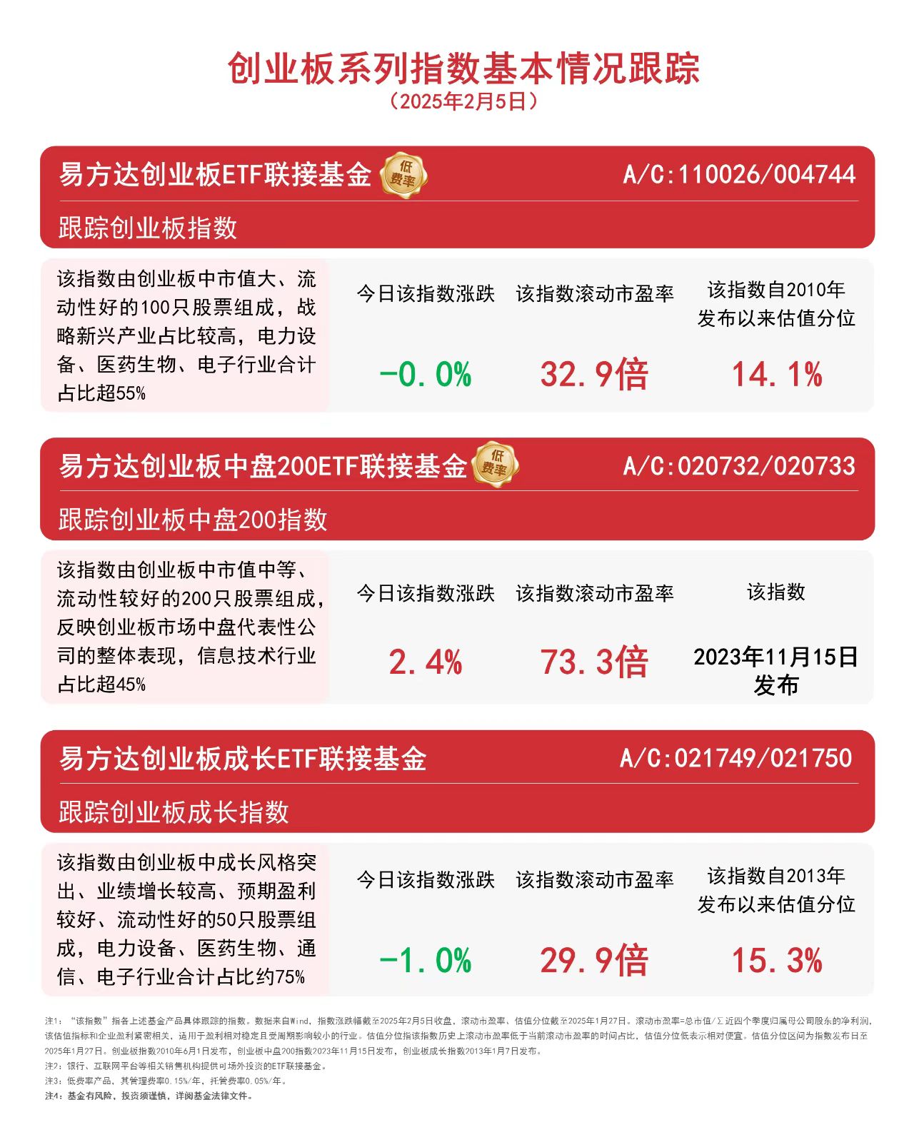 指数走势分化,关注易方达创业板ETF联接基金(A/C:110026/004744)等产品配置价值