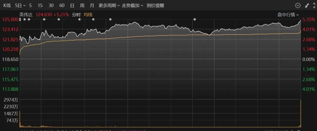 英伟达涨超5%,市值重回3万亿美元上方;奈飞、英特尔涨超1%,微软、Meta小幅上涨。