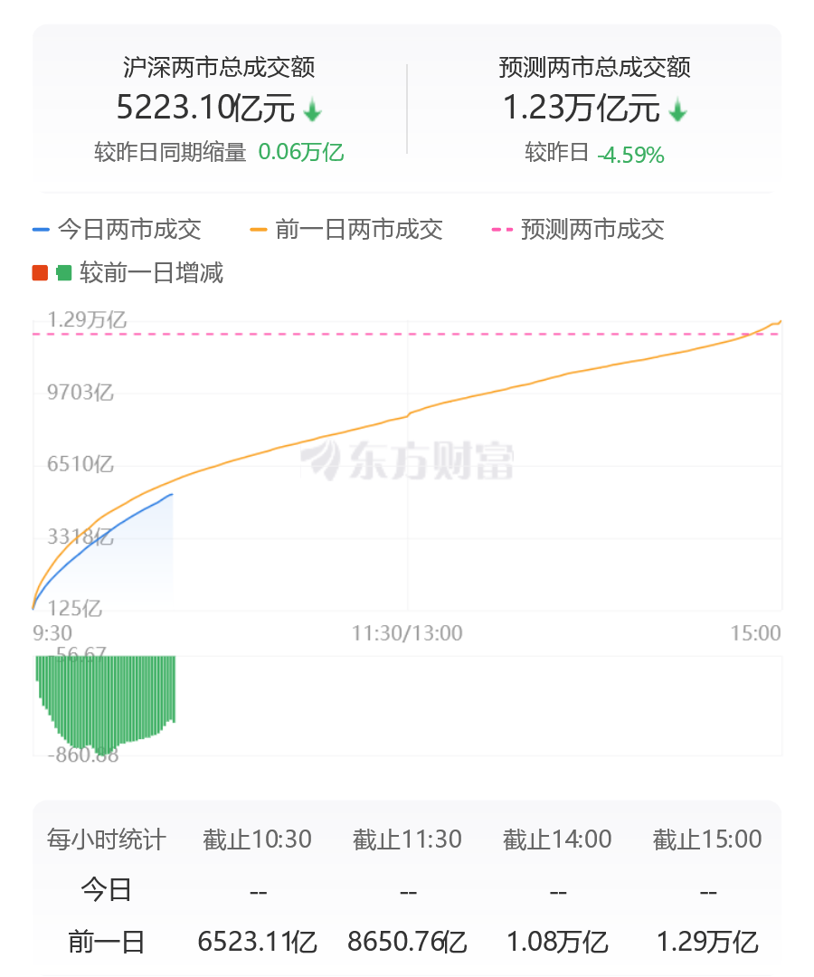 沪深两市成交额突破5000亿 较昨日此时缩量超600亿