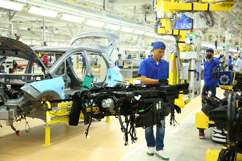 2024年7月4日,工人在位于泰国罗勇府的比亚迪泰国工厂工作。新华社记者孙玮彤摄
