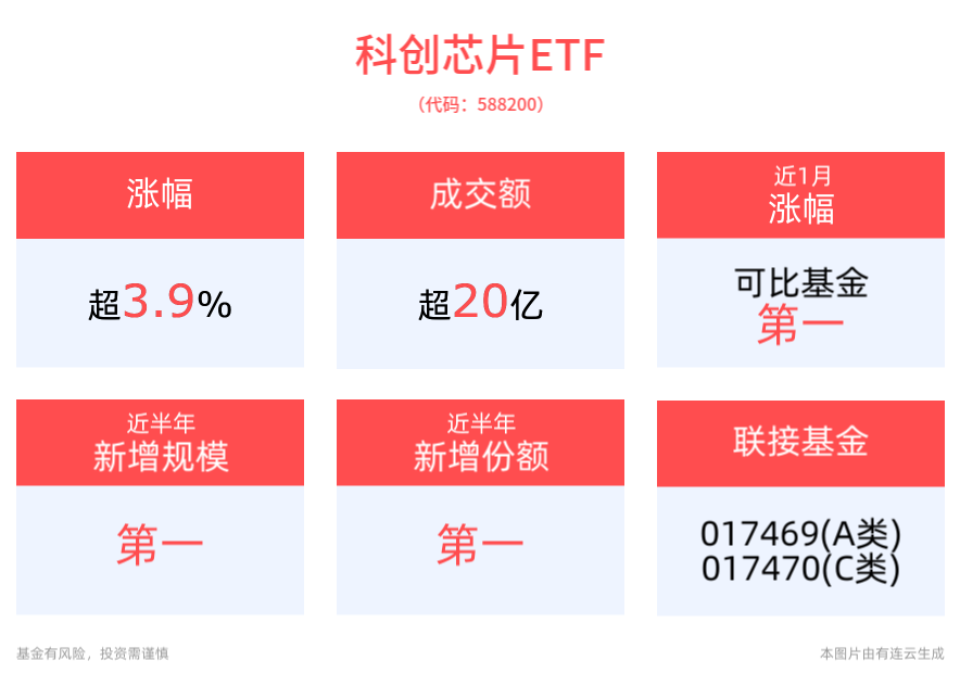 规模方面,科创芯片ETF近半年规模增长135.68亿元,实现显著增长。份额方面,科创芯片ETF近半年份额增长65.85亿份,实现显著增长。