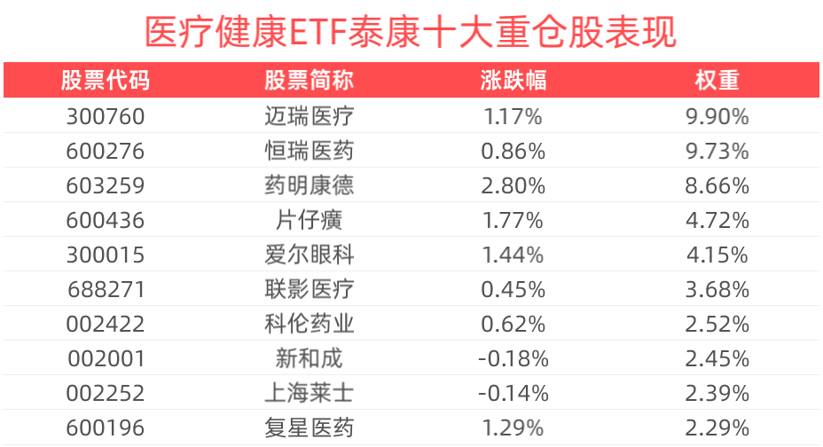 医疗健康ETF泰康(159760),场外联接(泰康医疗健康ETF发起式联接A:020093;泰康医疗健康ETF发起式联接C:020094)。