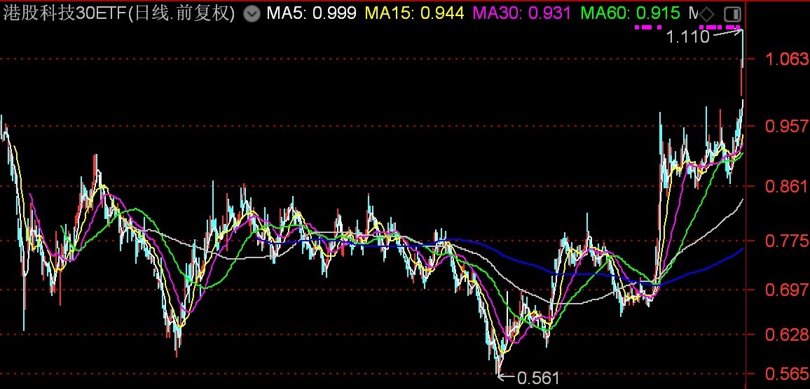 多只港股相关ETF成交火热,港股科技30ETF早盘换手率超500%,价格创上市新高