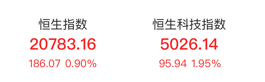 恒生指数涨近1% 恒生科技指数涨近2%
