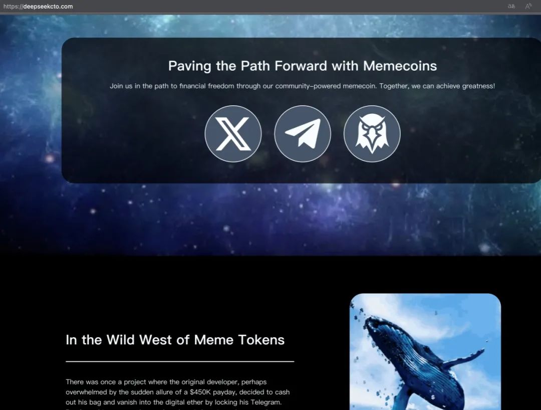除此之外,骗子紧跟技术潮流,利用市场的兴奋情绪,还推出了所谓“DeepSeek加持”的各种高大上功能的空气币(无实质价值的虚拟货币)。这种模式与过往许多科技爆款(如ChatGPT)在爆火后迅速出现大量仿冒和诈骗的趋势高度相似。