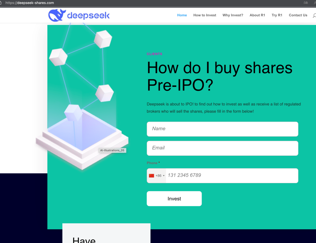 宣称可以抢先购买deepseek原始股的诈骗网站
