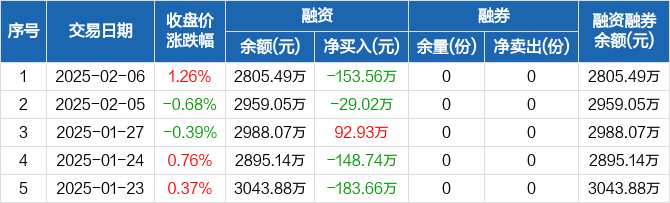 沪深300ETF南方:融资净偿还153.56万元,融资余额2805.49万元(02-06)