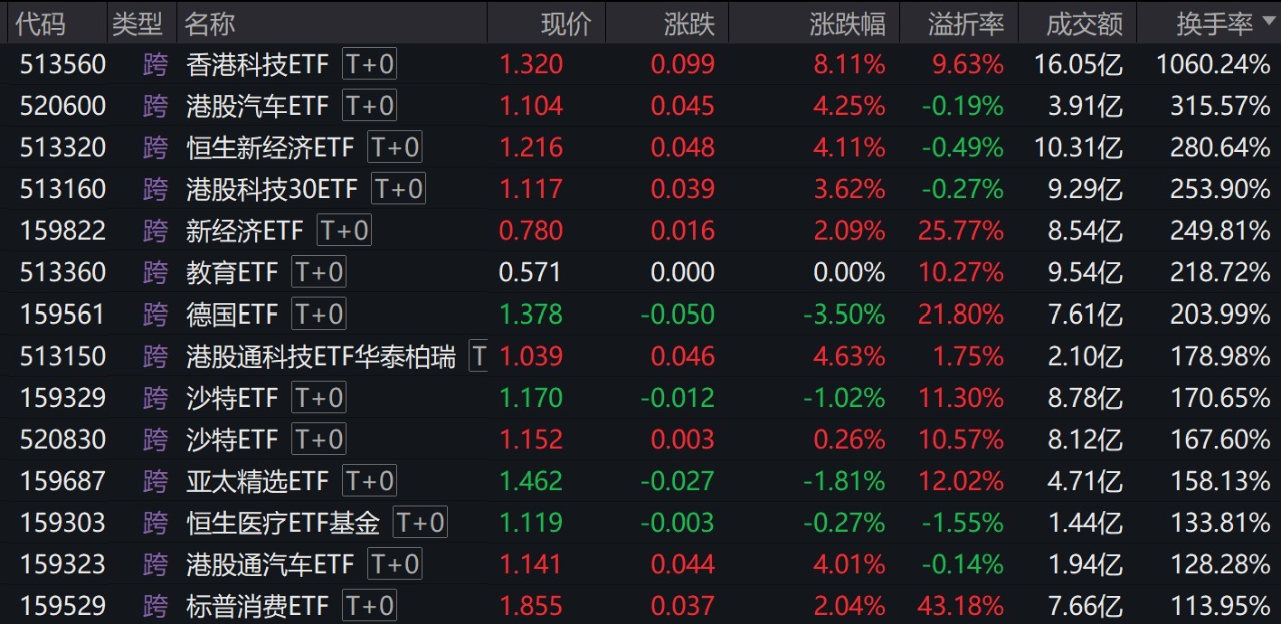港股相关ETF成交活跃 香港科技ETF换手率高达1060.24% 港股汽车ETF换手率超300%