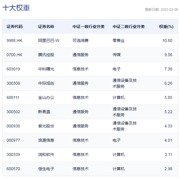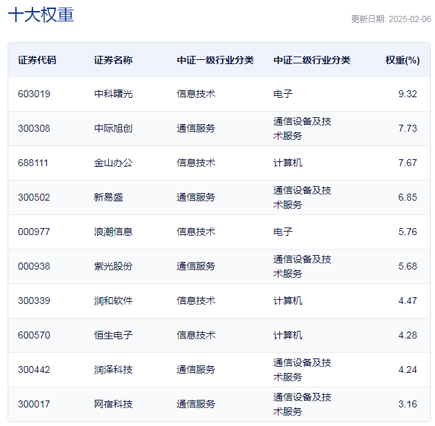中证沪港深云计算产业指数主要权重股