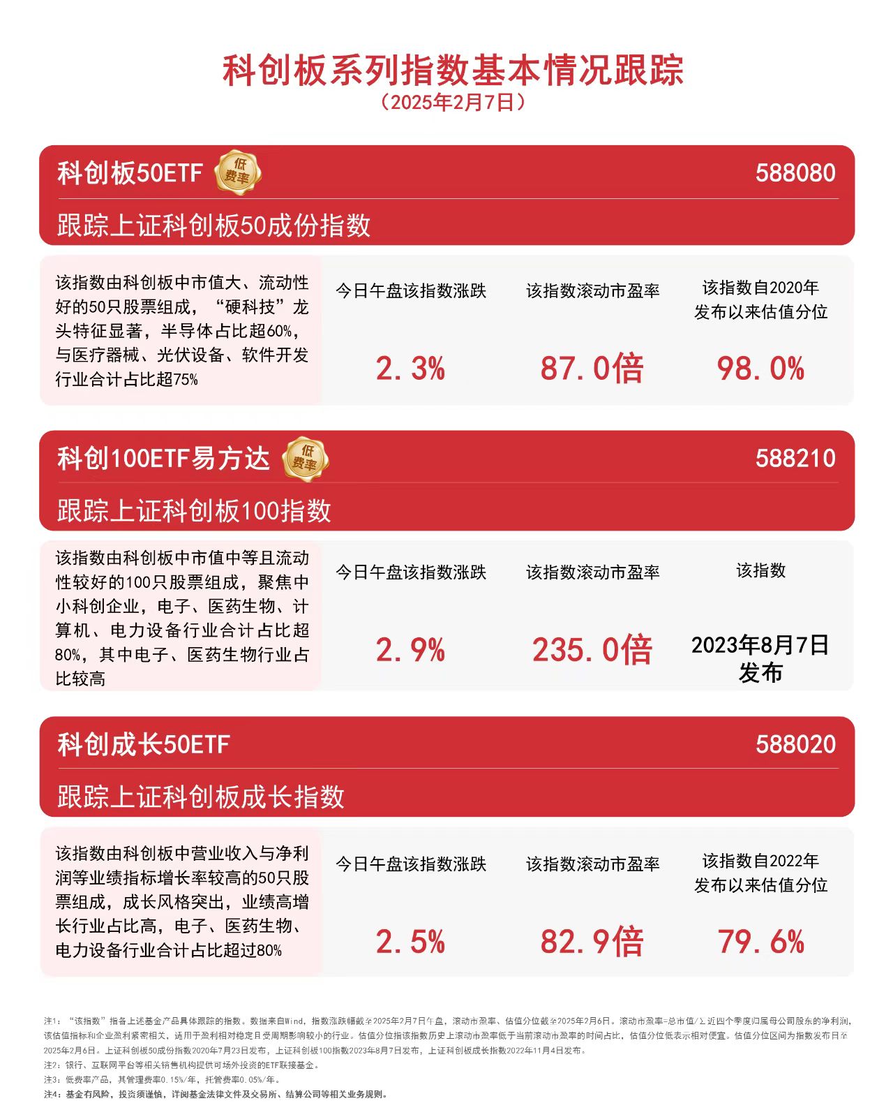 指数集体涨超2%,科创100ETF易方达(588210)、科创板50ETF(588080)等产品受市场关注