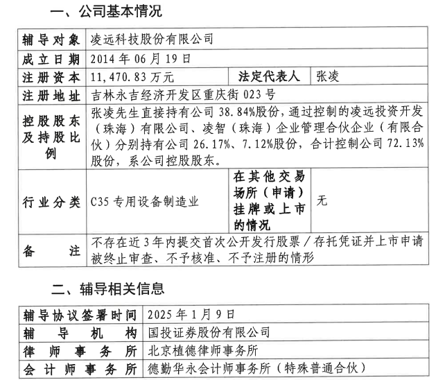 财中社2月8日电 凌远科技股份有限公司(下称“凌远科技”)1月9日与国投证券签署上市辅导协议,并于近日向吉林证监局提交了上市辅导备案报告。