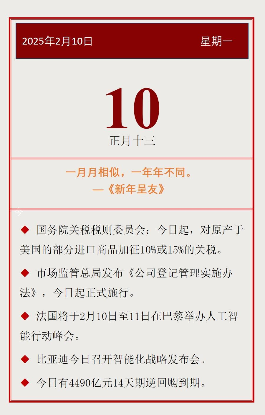 【投资日历】周一(2月10日)资本市场大事