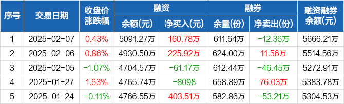 电力ETF:融资净买入160.78万元,融资余额5091.27万元(02-07)