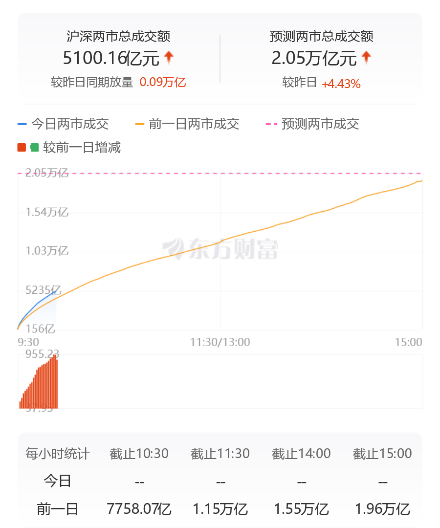 沪深两市成交额突破5000亿。