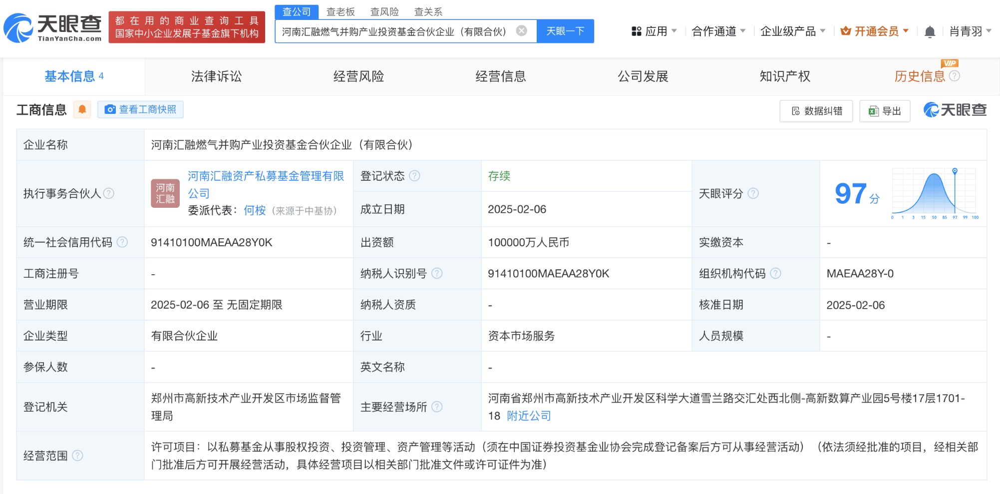 天眼查App显示,近日,河南汇融燃气并购产业投资基金合伙企业(有限合伙)成立,执行事务合伙人为河南汇融资产私募基金管理有限公司,出资额10亿人民币,经营范围为以私募基金从事股权投资、投资管理、资产管理等活动。合伙人信息显示,该基金由河南燃气集团有限公司、河南蓝天燃气股份有限公司、河南汇融资产私募基金管理有限公司共同出资。